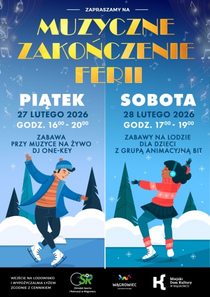 Dwa tygodnie zimowego wypoczynku to czas regeneracji, ruchu i wspólnych chwil. Zanim dzieci wrócą do szkolnej codzienności, zapraszamy na aktywne i radosne zakończenie ferii „Zabawy na lodzie dla dzieci”. W programie: – animacje i gry ruchowe na lodzie – aktywność prowadzona przez grupę animacyjną BiT – aktywność prowadzona przez grupę animacyjną BiT – bezpieczne, zorganizowane zakończenie ferii To propozycja dla rodziców, którzy chcą, aby ferie zakończyły się energicznie i z uśmiechem. Nie przed ekranem, lecz w ruchu i wśród rówieśników. Wraz z Ośrodkiem Sportu i Rekreacji zapraszamy do wspólnego kibicowania z trybun i do przeżycia tego popołudnia razem z nami.